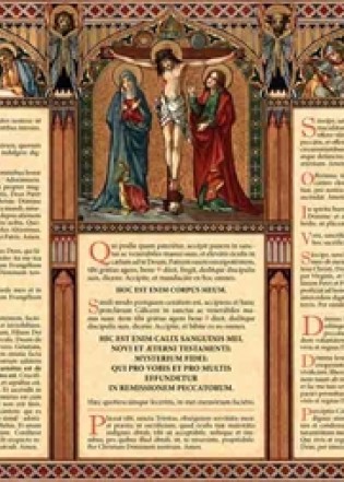 Wo immer die heilige Messe nach der überlieferten Form gefeiert wird, stehen auf dem Altar außer dem Messbuch auch die drei sogenannten Kanontafeln. Sie haben eine zweifache Funktion, nämlich als Hilfe und Gedächtnisstütze für den zelebrierenden Priester und als Zierde für den Altar. Deshalb sollen sie einerseits gut lesbar, andererseits aber auch ansprechend gestaltet und schön sein. Auf diese Weise dienen sie dem Priester bei den heiligen Vollzügen und fördern zugleich seine und des Volkes Andacht. - Die illustrierten Kanontafeln wollen diesen beiden Anforderungen entsprechen!