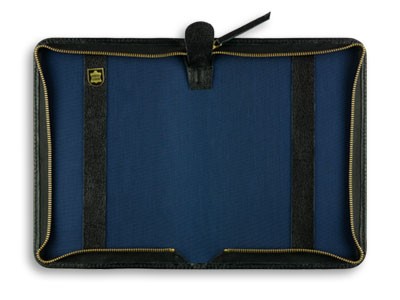 Für das Diurnale Romanum bieten wir ergänzend eine maßgeschneiderte Hülle aus genarbten schwarzen Rindspaltleder mit Reißverschluss und Goldprägung an.