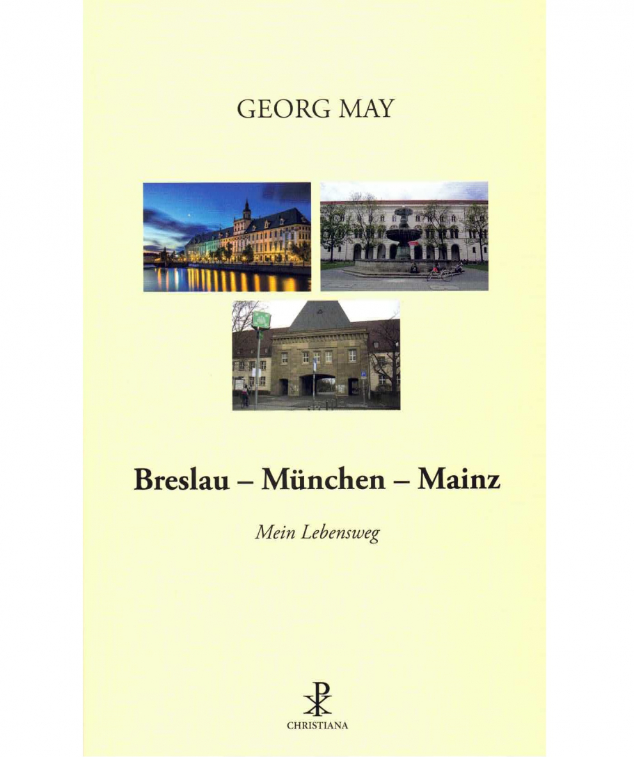 Mit seiner Biographie "Breslau - München - Mainz" ist Georg May (Anm.: *14.09.1926) Zeitzeuge von Ereignissen und Entwicklungen in Kirche, Gesellschaft und Politik sowie der Veränderungen an den theologischen Universitätsfakultäten v. a. des 20. Jahrhunderts.