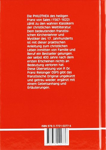 Der hl. Mystiker und Kirchenlehrer Franz von Sales (1567-1622) schenkt uns mit der "Philothea" eine wertvolle Hilfe für eine christliche Lebensführung in der Welt. Der Klassiker christlicher Literatur ist für Gott liebende Seelen noch ebenso aktuell wie zur Zeit des hl. Franz von Sales.